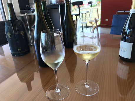 「まず750mlのスティルワインを造る、そして瓶内二時発酵時にワインの容量は少しだが増加するんだ。そしてデゴルジュマンで今のようにほんの少しの澱を飛ばす。その後ボトルの中にあるのは750mlのワインだ。それで完成、何も足さない。ドザージュ※5 もいらない。」